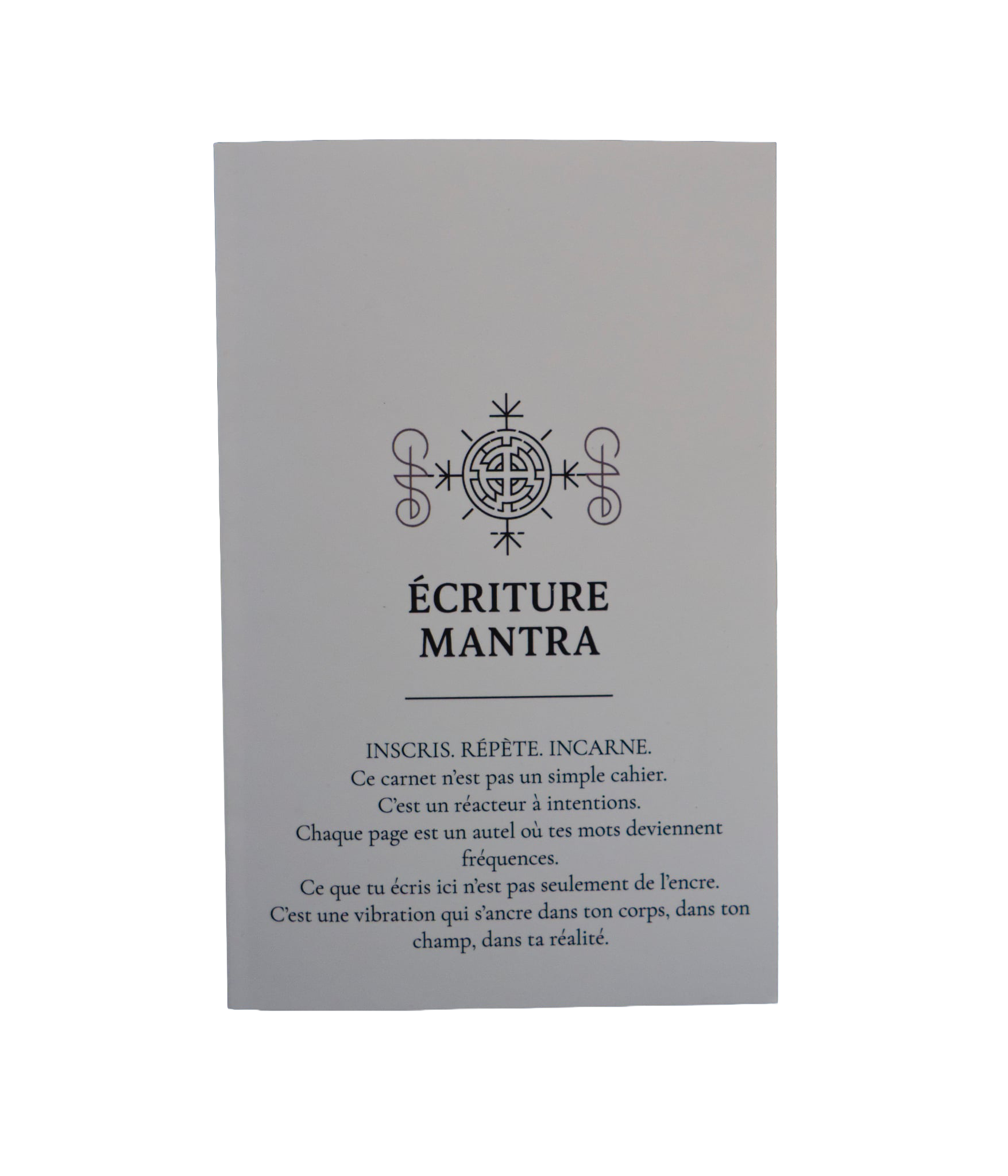Écriture Mantra est un carnet conçu pour ancrer une idée, une phrase, une direction.